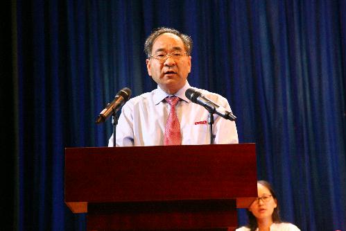 学校首届“卓越教学奖”获得者、基础医学与法医学院仇容教授代表教师发言,她对新生们提出了几点建议:一是要心怀大爱,无私奉献。作为一名医学生,首先要珍爱生命,爱己更要爱人,才能在救死扶伤的工作中奉献爱。二是要勤奋学习,开拓创新。她认为没有求实创新的精神和孜孜不倦的学习态度,没有广博的医学专业基础和熟练的医疗临床技能,就难以真正造就为一名良医。三是要强健体魄,砥砺意志。她说从一点一滴做起,不断磨练意志,从每一次失败中总结经验,从每一次成功中攫取动力,培养自己良好的业务素质和过硬的思想品质。