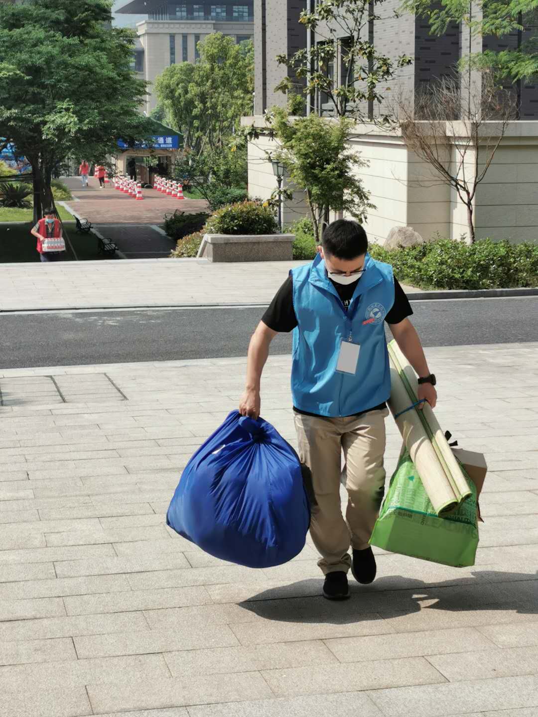 校园里,有学生的地方就有老师志愿者。好多老师服务完滨江校区,又赶到临安校区接着干。虽然辛苦,脸上却乐开了花。让人感动的是,一位教师志愿者的奶奶刚去世,他依然一声不吭地按照原定给她的任务,凌晨5点就随车去杭州东站接同学……