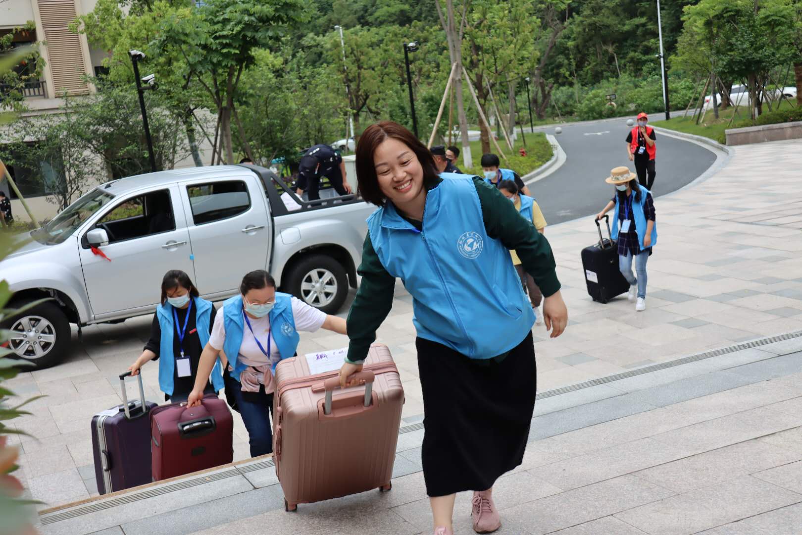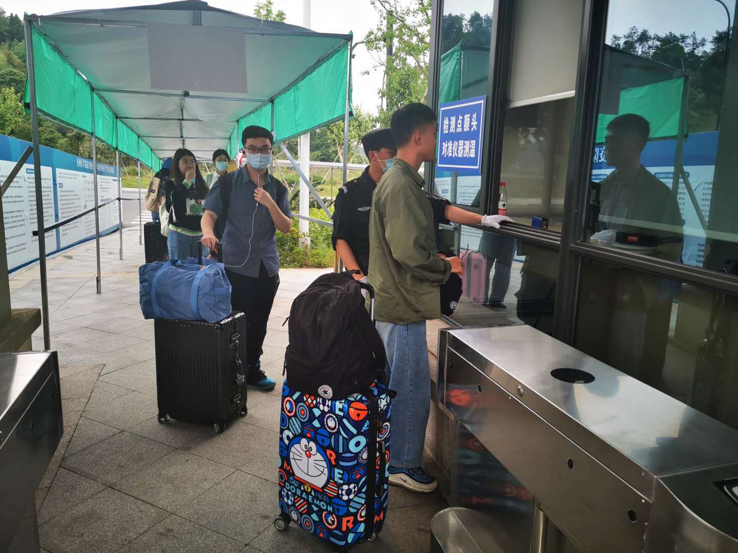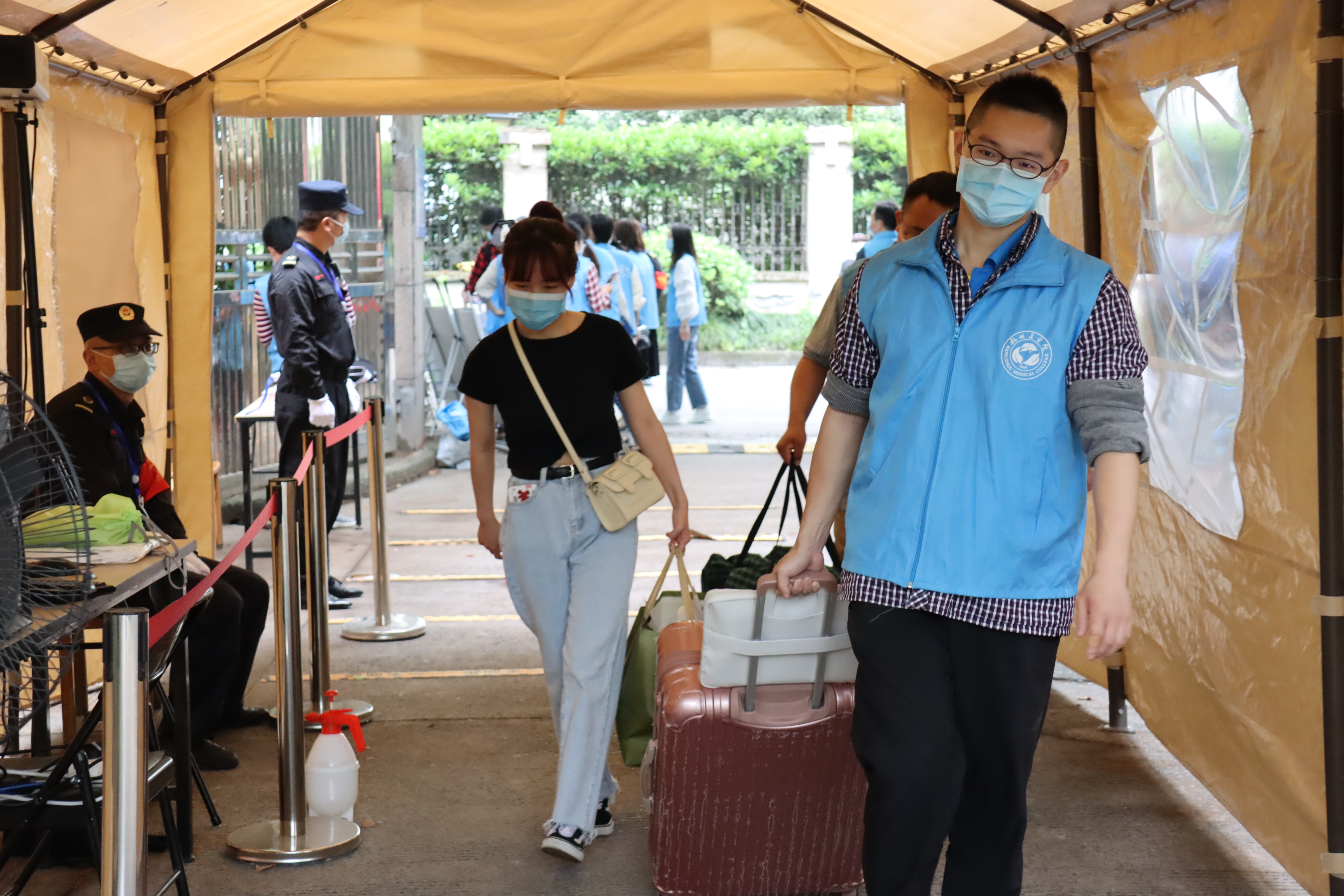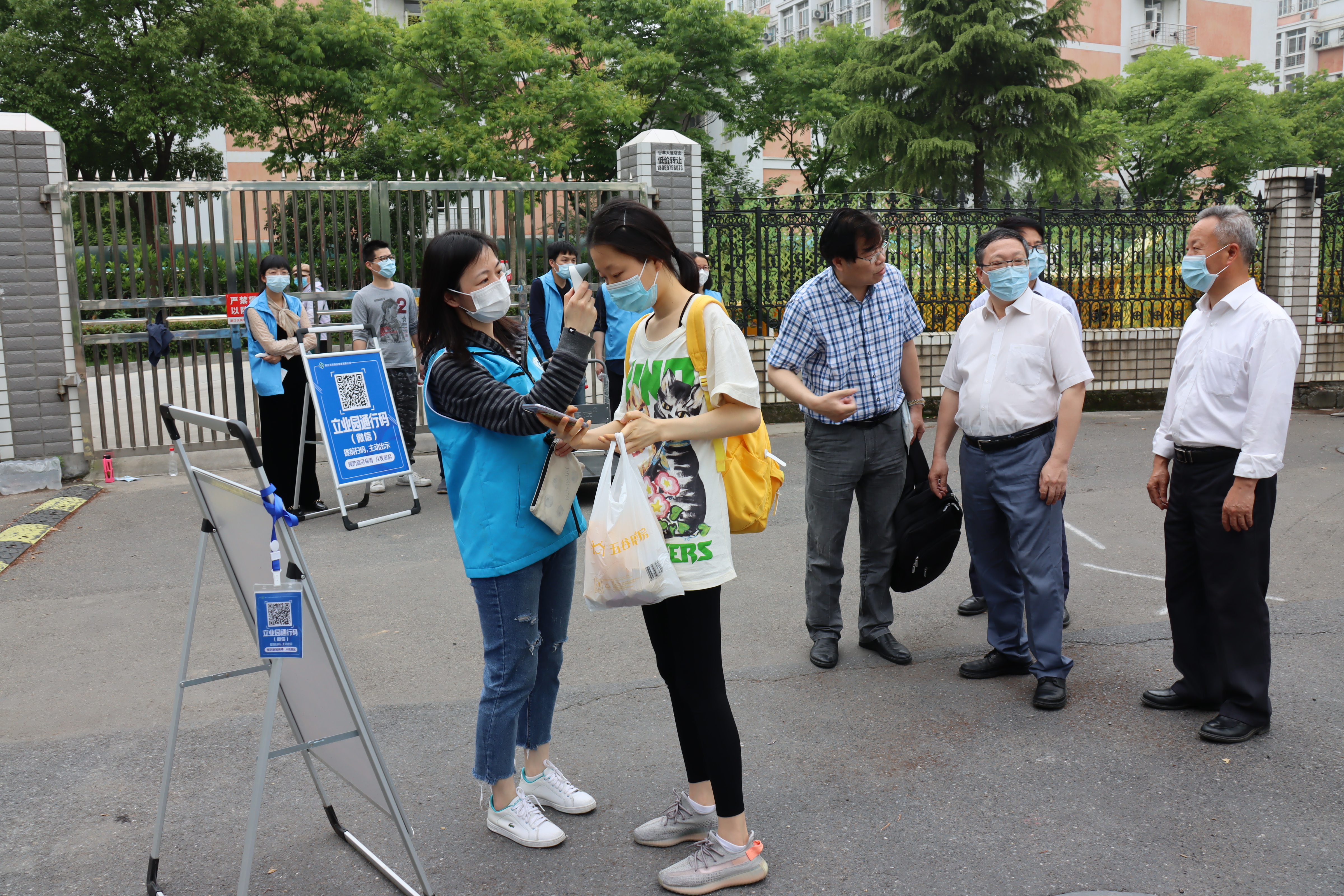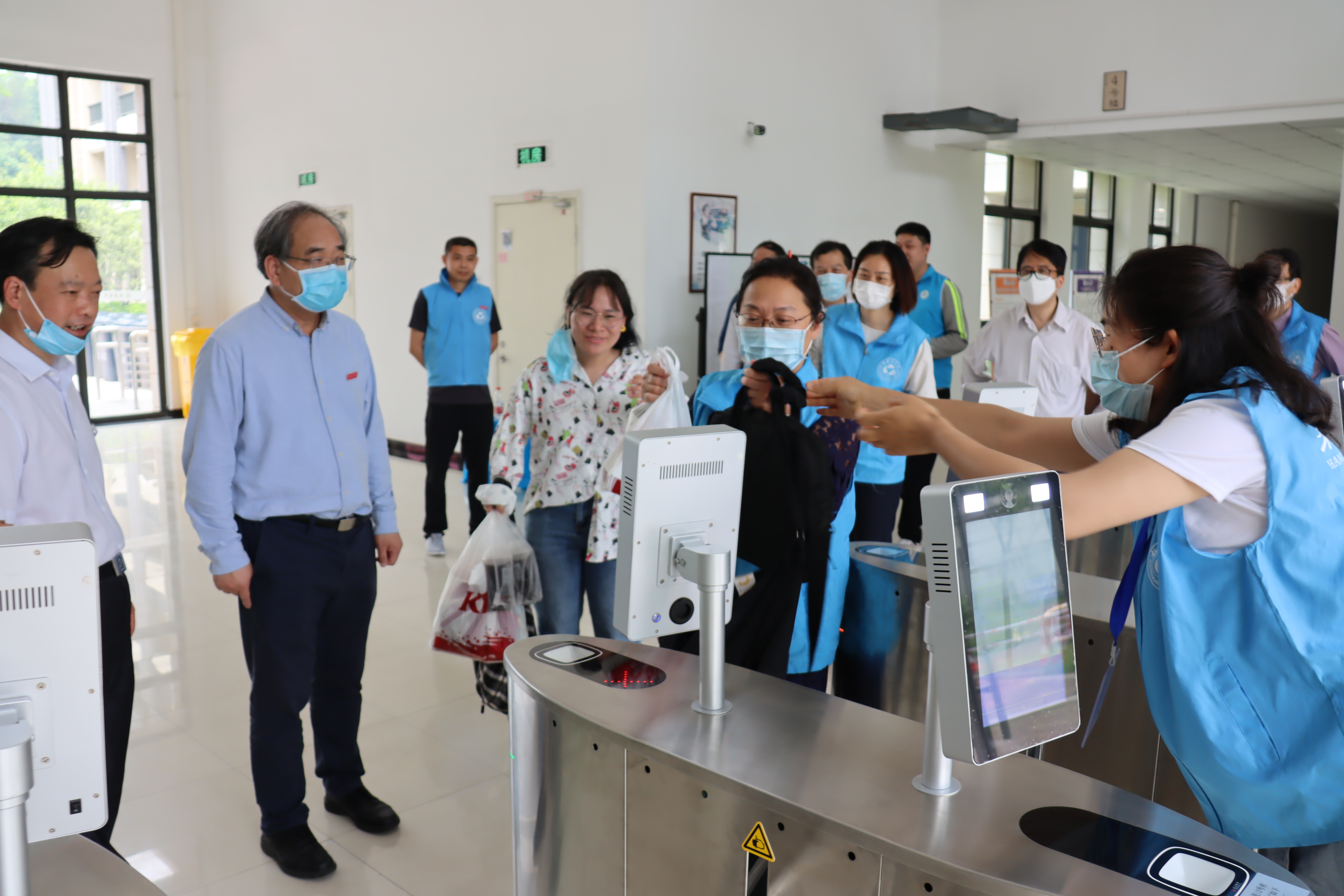 为确保学生返校工作安全有序,在学校疫情防控领导小组统一指挥协调下,由400余名教职工组成的志愿者服务团队,全情投入,积极参与做好学生返校接站、登记引导、体温检测和行李消杀等工作。