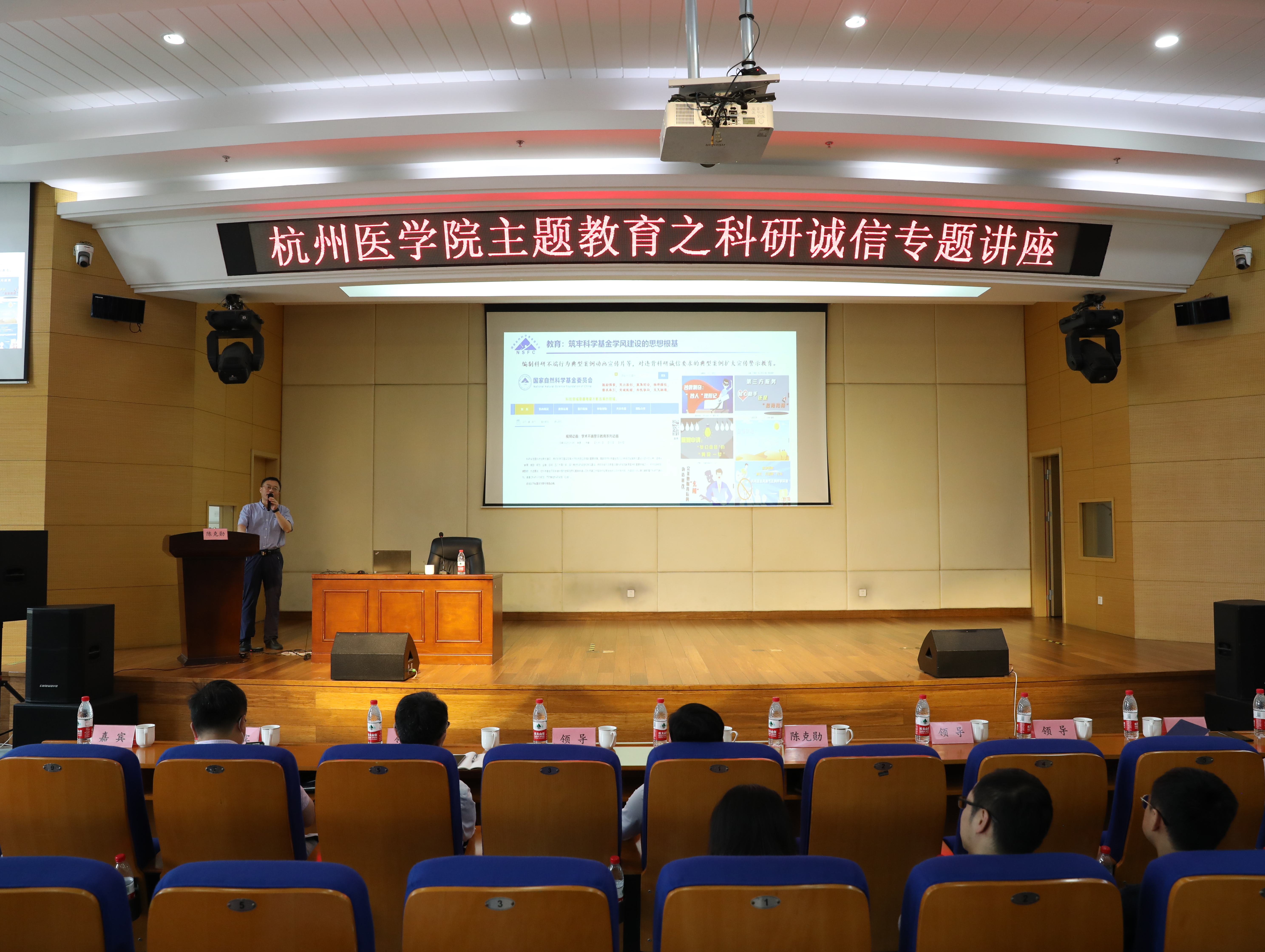 为深入推进科研诚信、科研伦理和学风建设工作,营造风清气正的学术环境和严谨求实的学术风气,尊崇科学规范的科研伦理和勇攀高峰的科学精神,落实依托单位的主题教育责任,5月30日上午,学校在黄龙校区4楼大报告厅举行主题教育之科研诚信专题讲座,会议特邀国家自然科学基金委员会科研诚信建设办公室学风建设处处长陈克勋为我校师生做主旨报告。校长梁广主持讲座,我校科研人员、研究生等三百余人现场聆听了讲座,十五家附属医院同步观看线上直播。