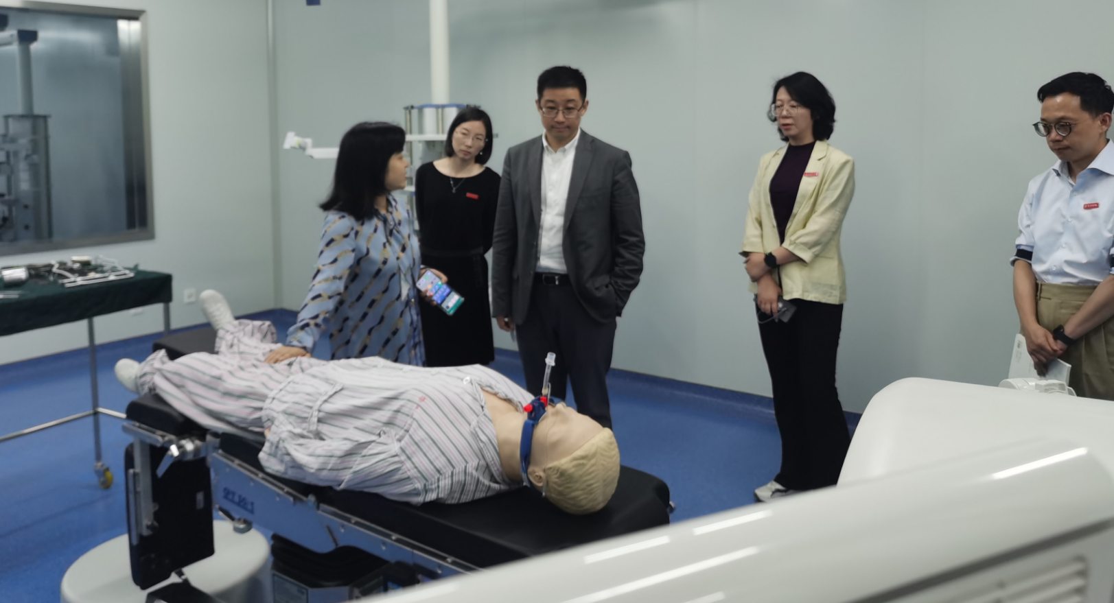 医院科教部陈瑞安副主任向检查组汇报医院教学实施情况,详细介绍了医院开展模拟教学、实习生党员管理、安全教育等方面工作。见面会后,科教部程芸主任陪同检查组参观了医学模拟中心。医院先进的训练设备和优渥的培训师资给检查组留下了深刻印象。
