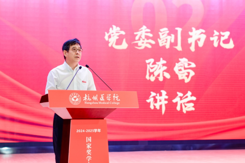陈雷在总结讲话中指出:“今天的24位国家奖学金候选人,是杭医学子中的杰出代表,是学校的骄傲,更是国家的未来。希望全体候选人能成为‘能量辐射源’,带动全校形成崇德尚学、比学赶超的优良学风。”他向全体同学提出三点希望:一是以榜样为“灯塔”,在“博极医源”的求索中锚定青春方向;二是以奋斗为“舟楫”,在“格物穷理”的实践中积蓄青春力量;三是以担当为“底色”,在“强国有我”的征程中彰显青春价值。