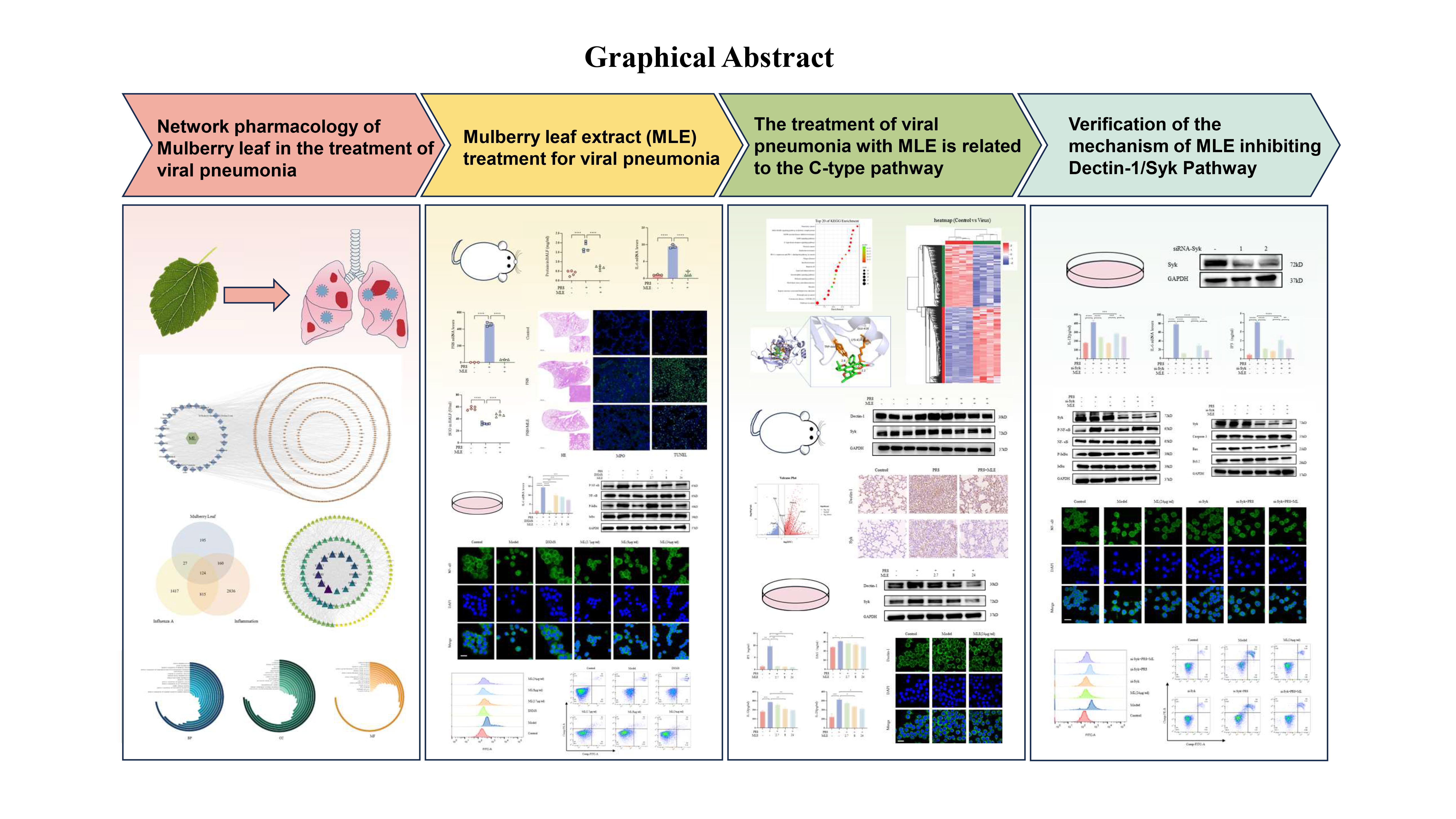 本研究报道了桑叶提取物治疗甲型流感病毒性肺炎的作用,阐明了桑叶提取物对Dectin-1/Syk/NF-κB信号通路的抑制作用。研究不仅为桑叶的药用开发提供了新的科学依据,同时提出靶向抑制Syk作为治疗流感病毒性肺炎的新思路。