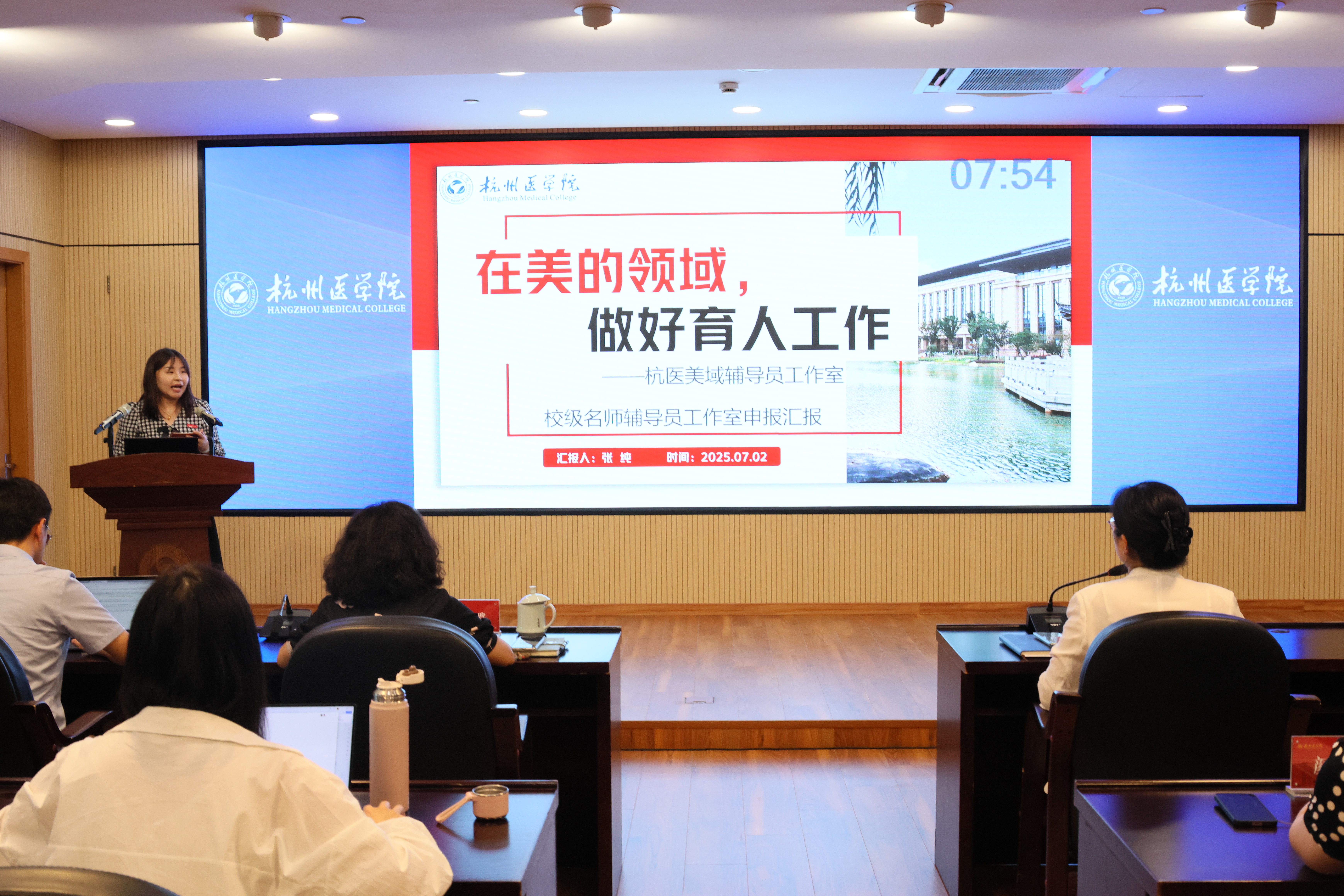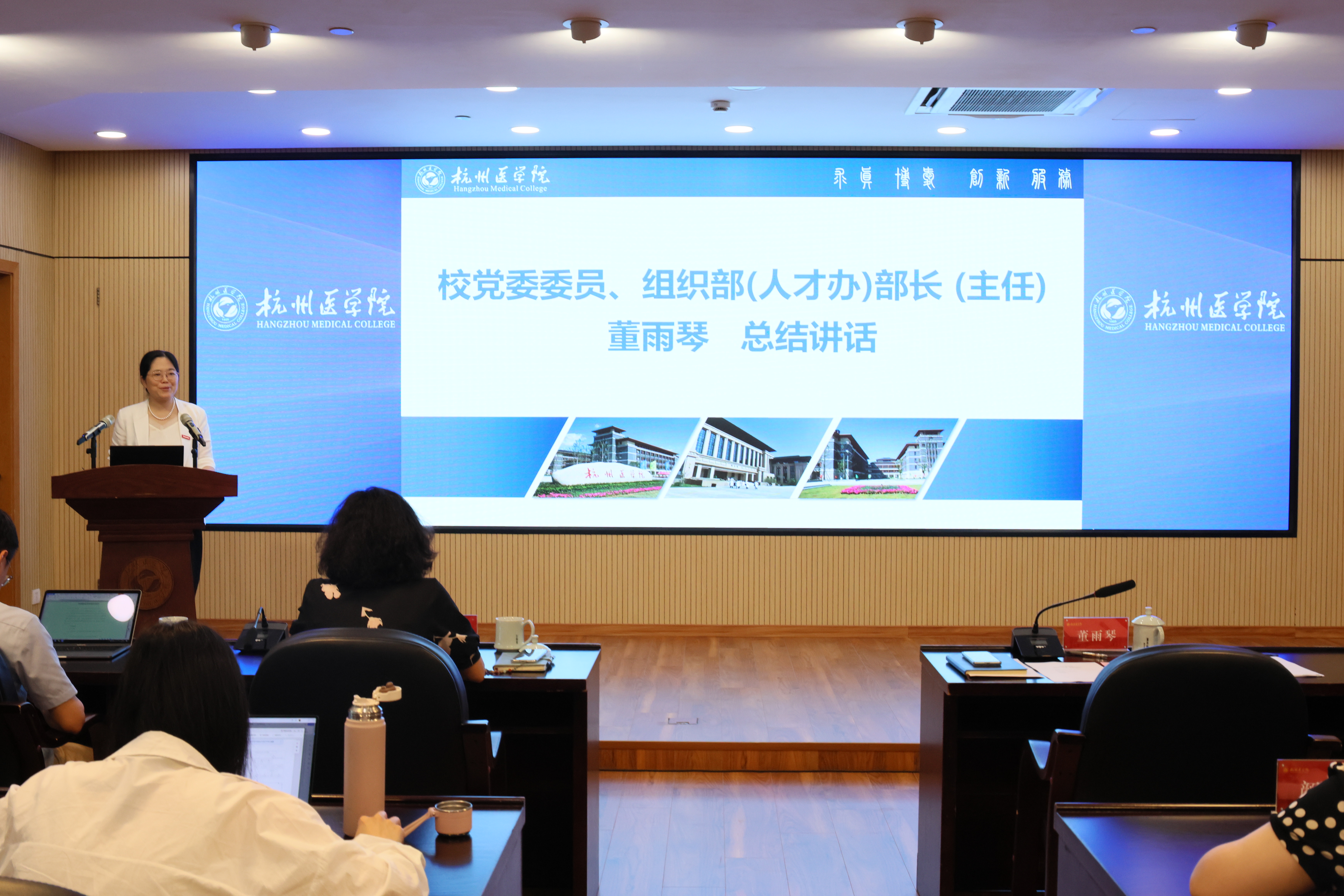 董雨琴部长对辅导员工作室在促进辅导员队伍职业化、专业化、专家化发展方面的积极作用给予了充分肯定。她高度赞扬了各工作室与时俱进的设计思路和独具匠心的实现路径,认为本次大会充分展现了杭医辅导员卓越的实践创新和过硬的业务本领。同时对进一步强化辅导员工作室建设提出了四点希望和要求:一是要强化思政引领,严把育人方向;二是要加强协同联动,凝聚育人合力;三是要发挥示范引领,提升育人实效;四是要聚焦学生需求,创新赋能育人路径。
